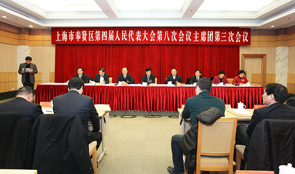 1月20日下午,区四届人大八次会议主席团举行第三次会议。会议听取了关于各代表团审议区人大常委会工作报告、区人民法院工作报告、区人民检察院工作报告的情况汇报;审议了关于区人大常委会工作报告、区人民法院工作报告、区人民检察院工作报告等三个决议(草案), 决定提交各代表团审议。