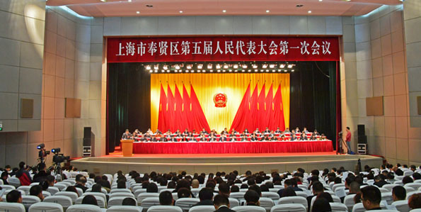 1月9日,奉贤区第五届人民代表大会第一次会议第一次全体会议在庄严的国歌声中,于区会议中心大礼堂隆重举行。来自全区各行各业的215名人大代表肩负着全区人民的重托,满怀豪情、共聚一堂,共同履行宪法和法律赋予的神圣职责。