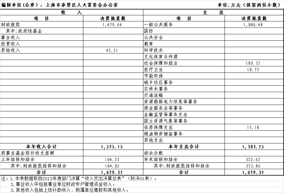 2013年度收入支出决算批复表(表一)
